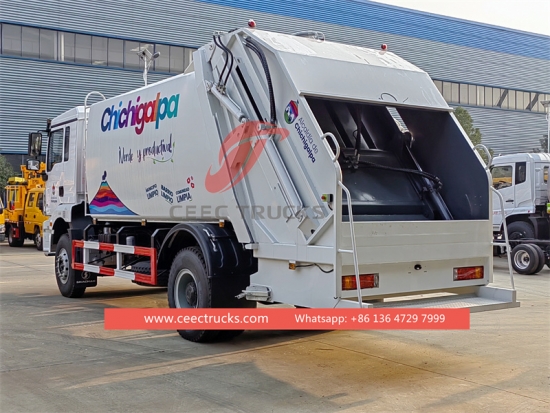 Shacman H3000 20cbm vuilniswagen met achterlader (ook wel genoemd afvalpers, Shacman afvalperswagen, fabrieksafvalperswagen, achterlader, afvalperswagen, afvalpersfabrikant in China) is Ontworpen voor het dagelijks transport van afval in woonwijken zoals alle soorten steden, grote stations, havens en kades, luchthavens en dichtbevolkte gebieden zoals industriële en mijnbouwbedrijven en militaire eenheden.