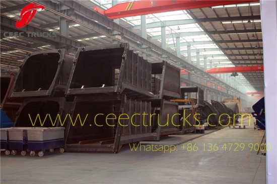 TOP kwaliteit 12CBM afvalperswagen fabrikant CEEC TRUCKS leverde de zijplaatconstructie van de persbak, speciaal geleverd hoogwaardig staalmateriaal, dikte voor zijkant en bodem meer dan 5 mm, standaard roestwerende verf, logo's op aanvraag