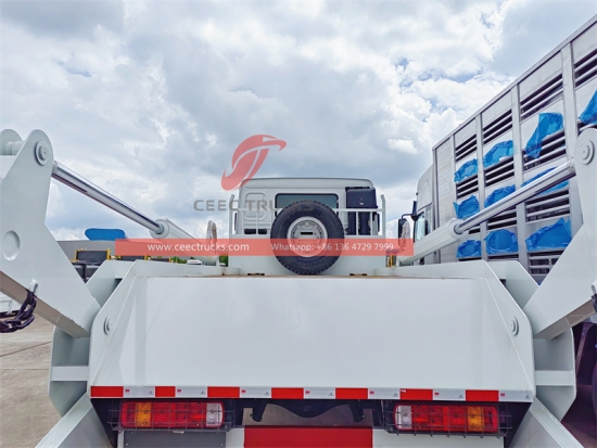 Vuilniswagen met zwenkarm(ook wel genoemdafvalcontainerwagen, afvalcontainervoertuig, vuilniswagen met zwenkarm, afvalcontainerwagen met telescooparm, afvalcontainer met meerdere containers)is een type vrachtwagen dat wordt gebruikt voor het vervoeren en laden/lossen van containers of afvalcontainers.Hij is uitgerust met hydraulische armen of een telescopische giek waarmee hij containers kan tillen en op de laadvloer van een vrachtwagen kan laden. De container, een container met open bovenkant, is zo ontworpen dat hij gemakkelijk door de portaalarmwagen kan worden opgetild en op de vrachtwagen kan worden geplaatst voor transport. Eenmaal gevuld, kan de portaalarmwagen de container naar een aangewezen locatie brengen om te lossen. Het biedt een handige en efficiënte manier om grote hoeveelheden afval te vervoeren en te verwerken, waardoor het een onmisbaar hulpmiddel is in de bouw- en afvalverwerkingsindustrie.
