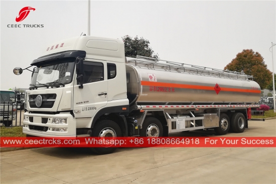 29,5 cbm olietankwagen, SINOTRUK 8x4 chassis, handgeschakelde 10-versnellingsbak, SINOTRUK 310 pk dieselmotor, standaard brandstoftanker, standaard oliepomp van een bekend merk. Alle lak en logo's zijn naar wens aan te passen.