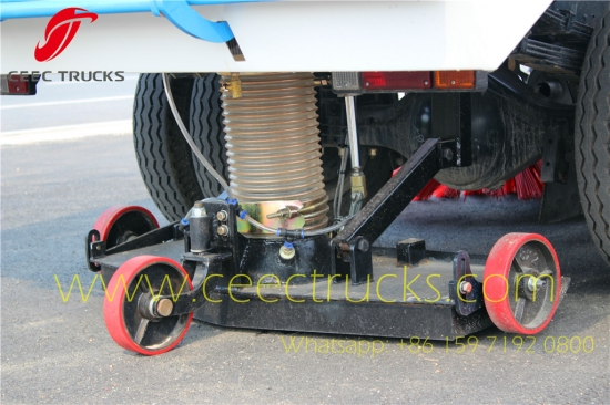 2.DONGFENG 8CBM Veegmachinehebben 4 veegborstels in het midden en een zuigmond aan de achterkant.